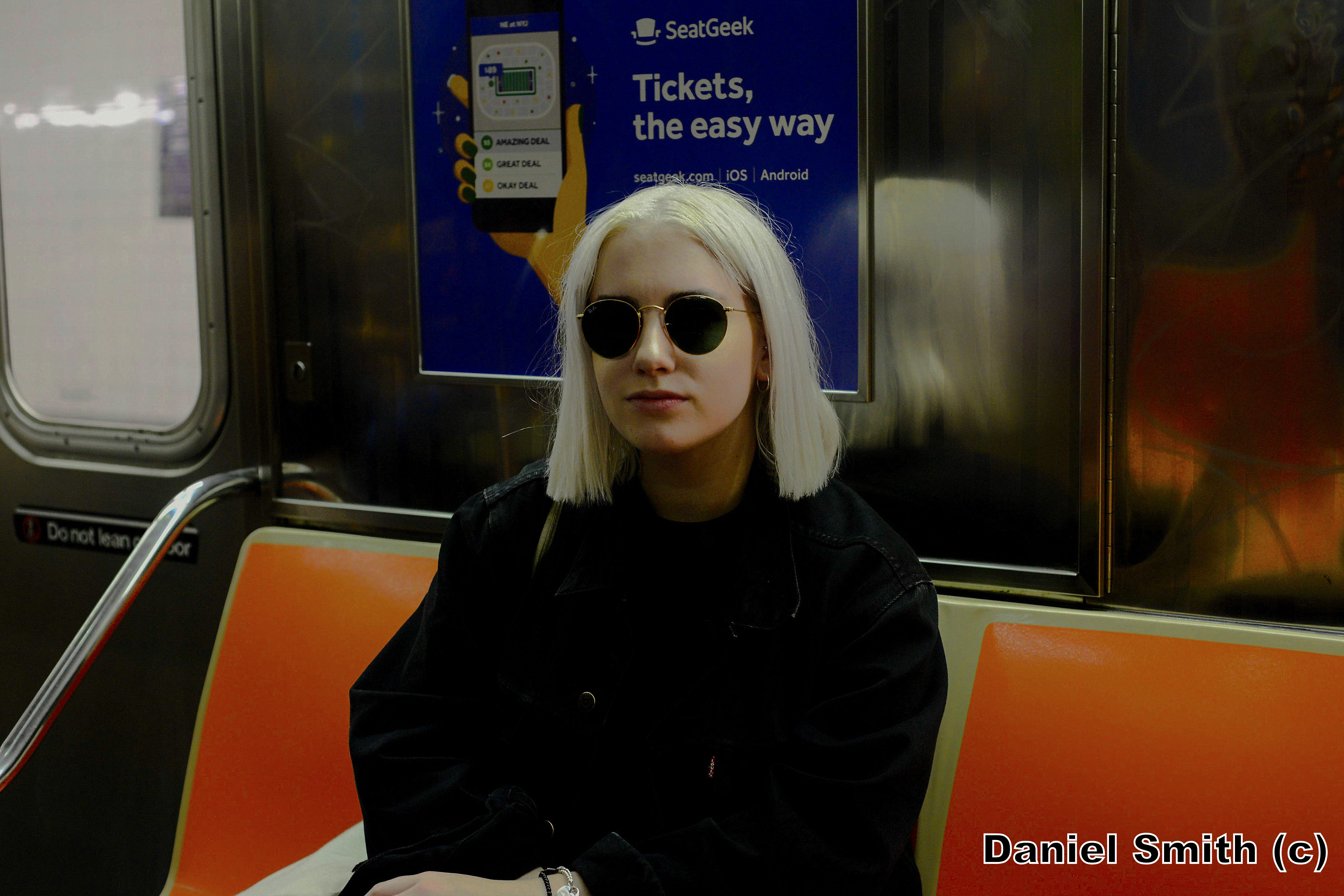 Fashion artist from London on the B Train. 8/19/2016.