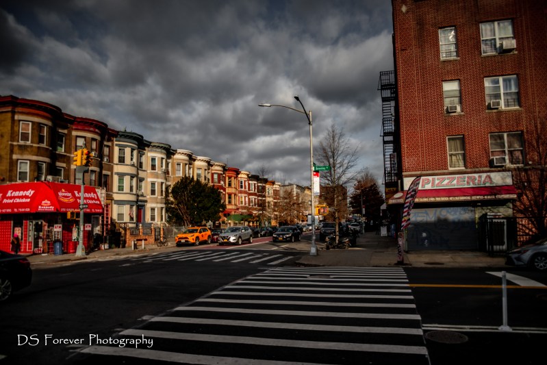 Sunny morning along Nostrand Avenue.