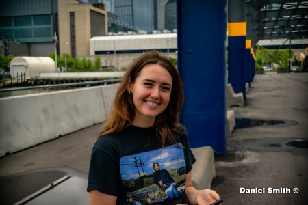 Allison about to do some skateboarding.