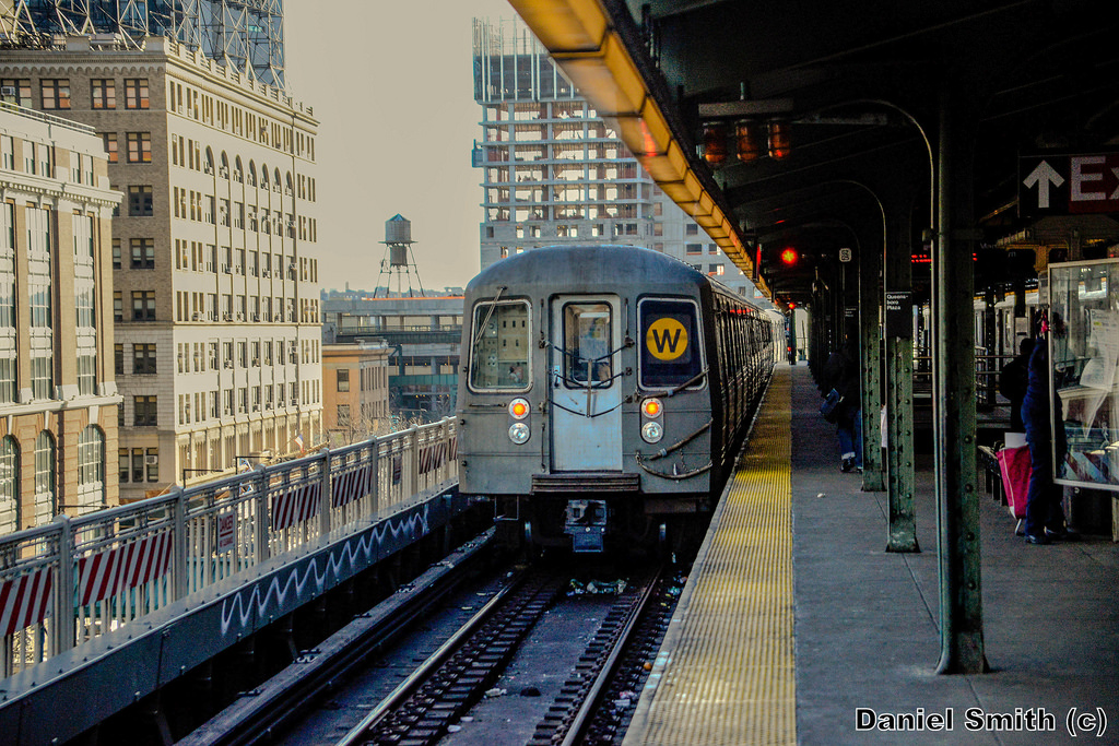 W Train departs Queensboro Plaza. 1/13/2017.