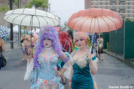 Mermaids and their umbrellas. It was raining.